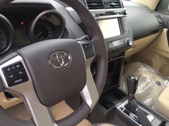 17款中东版丰田霸道4000 配置:天窗,外挂备胎,胎压监测,6速变速箱,17寸铝合金轮毂,大字母彩条,大尾翼高位刹车灯,智能卡,一键式启动,手动座椅,黑色踏板,电动折叠后视镜,大屏,手动空调,多功能方向盘,差速锁,下坡辅助,冰箱