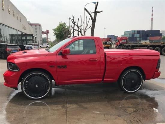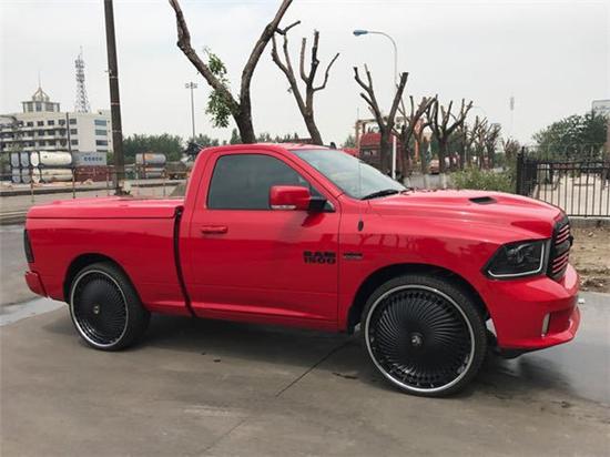 17款道奇公羊定制版,集越野及舒适性于一体的重型皮卡。外观方面:新款道奇外观上刚劲有力表现出皮卡车所具备的硬朗风范,而且内部配备的豪华性在同级别车中同样可圈可点。整体造型以方型为主,饱满感在车辆每一个环节都被表现的淋漓尽致。道奇公羊皮卡发动机进气口位于右侧大灯的位置,高度在一米左右,高于绝大多数轿车和SUV。
