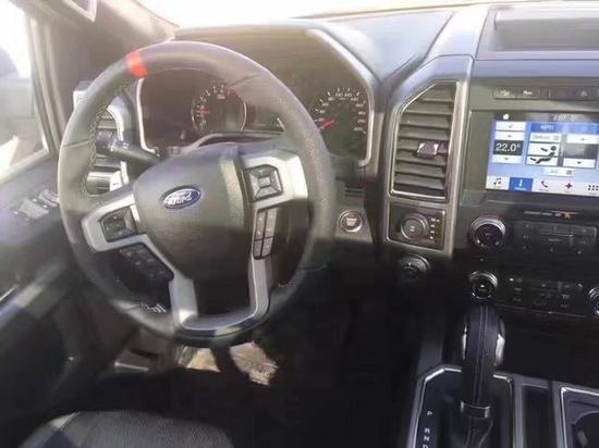 2017款福特F150猛禽的内饰延续了老款车型的整体设计,不过新车的方向盘造型有 所调整,并增加了多功能控制按键与方向盘换挡拨片。24小时全国购车热线: 18222085560 赵勇 (同微信)