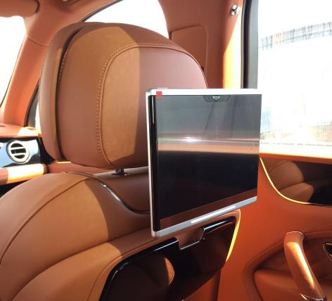 宾利添越真皮座椅的椅背及坐垫采用了大量菱形打孔处理,视觉效果很漂亮。皮质柔软,座椅填充物软硬适中,电动调节、三组记忆、加热通风以及按摩等功能一应俱全,无可挑剔。为后排乘客提供了一套名为TSR的控制器,能对后排空调、遮阳帘、娱乐系统等进行控制,这套触控设备整体用户体验还算不错。