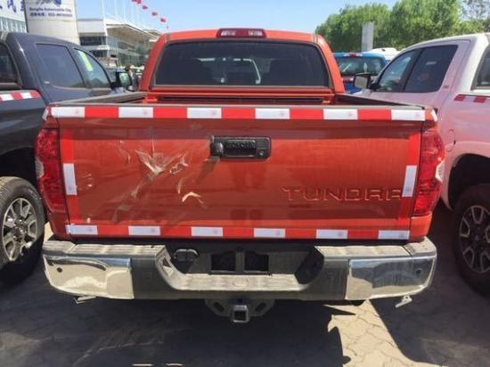 17款丰田坦途皮卡宽大硬朗的车身,粗犷有力,凸显美国车的风范,前脸明显外张的挡泥板以及前突的坚固格栅尽现强悍风格,视觉上极富冲击力。前脸明显外张的挡泥板以及前突的坚固格栅尽现强悍风格,视觉上极富冲击力。新坦途集合了SUV的越野性能、卡车的载货能力、以及轿车的舒适性。