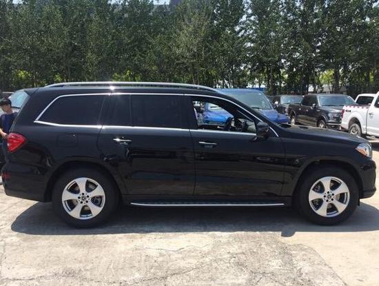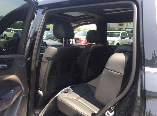 17款美规奔驰GLS450 黑/黑 全景天窗 P01高级包(盲点辅助,车道保持,14向座椅电动调节,电动调节方向盘带记忆,前座椅加热,后视镜折叠带记忆,无钥匙进入启动,室内氛围灯,迎宾灯);停车辅助包(360度环车影像 前后停车辅助 ) 无烟煤内饰(全黑)发光脚踏 轮毂锁