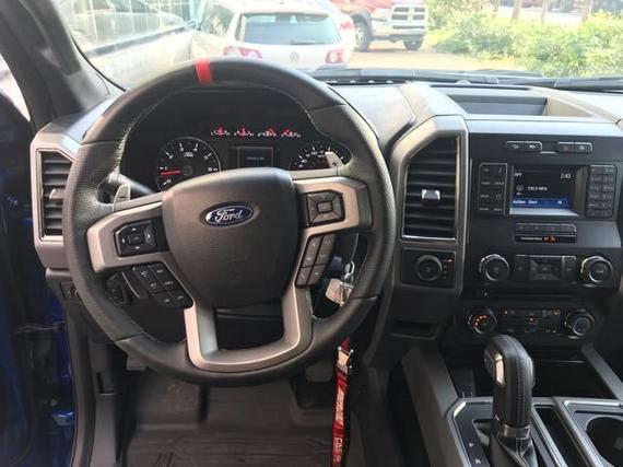 内饰方面:2017新款福特猛禽F150内饰采用独特的中控台和门饰板面漆和真皮包裹的方向盘。中控台部分辅以银色饰板装饰,六指针仪表盘的设计有些后工业时代的复古风格。采用带电冷热功能的可记忆式皮革座椅,头枕四向可调,搭配铝饰条和黑色钢琴烤漆内饰。可电动升降的后窗带隔板和电热除霜功能。后排的座位三个过分宽敞,乘坐四个身材高大的乘客绝对没问题。