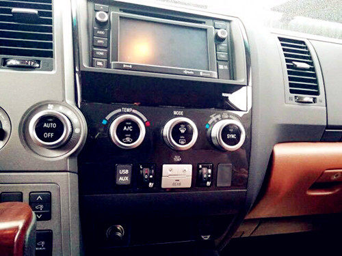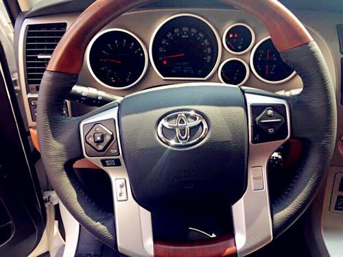 丰田红杉带有桃木内饰装饰,包括细节的方向盘和换档把都是桃木的,而且带有原装的大屏导航和倒车影像,带有底盘升降控制。全国贵宾销售专线:155 1090 5290经理(电话同微信)