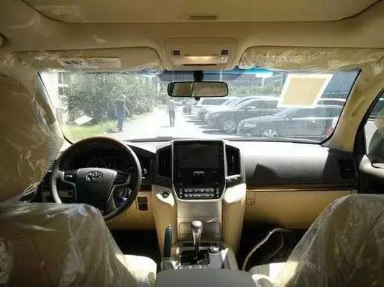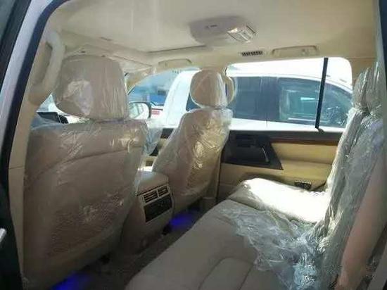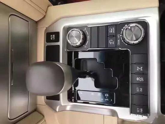 内饰方面:2017款丰田兰德酷路泽5700车内上深下浅的新色系搭配,让整个车内相比老款车型温馨的不少。特别是桃木饰条的加入使得车内看起来更“丰田”,也提升整车豪华氛围。17款丰田酷路泽5700整个操控区域色调为 深色系,仪表盘、方向盘和排挡等位置均配以桃木装点,尽显豪华质感。不但具有DVD导航,这款车的倒车 影像还可以显示在内后视镜上;中央扶手箱还装备了冷藏箱,这些都与中规版车型有所不同。