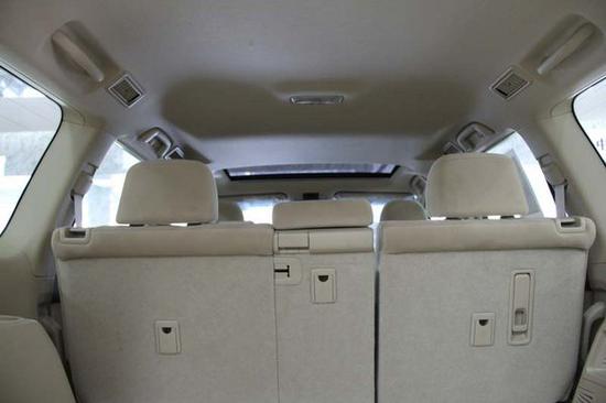 17款丰田霸道4000营造的氛围轻松至极,整个布局合理紧凑,按钮设计精简实用。人机工程学应用的非常到位,粗大的方向盘在越野时非常好用。与老款相比,新款的方向盘上集成了各种控制按钮,操控更为便捷。此外一大变动就是第三排座椅采用了底部收纳折叠设计,可以将座椅折叠后形成平整的储物平台。
