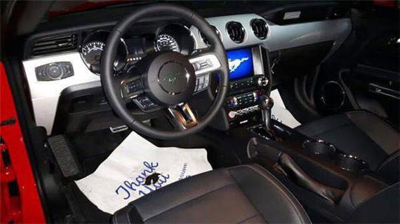 内饰方面:2017款福特野马内饰上主要升级的地方其实只有真皮座椅,其它很多内饰板用的还是硬塑料。2017款福特野马支持MyFord Touch功能的SYNC车载多媒体通讯娱乐系统,可通过中控台上的触控屏进行操作,科技感得到了进一步提升。