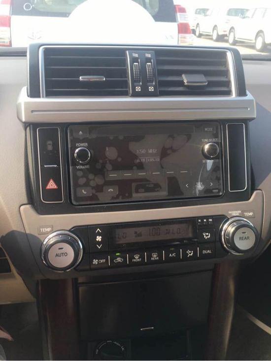17款霸道2700中东版,手续齐全配置:后挂备胎,高端备胎罩,6前速,两气囊,电动折叠后视镜,7座,丝绒座椅,胎压监测,倒车摄像,排气喉镀铬套件,车身彩条,定速巡航,车载冰箱,后4眼雷达,前后独立手动调节空调,可选配多功能真皮方向盘,蓝牙电话音乐连接,黑色脚踏板,17寸铝合金轮廓,高亮前后雾灯,地毯,ABS+EBD+BA,车稳定控制装置+牵引力控制装置+胎压监测。