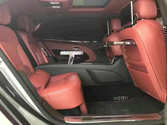 2018款宾利慕尚后排座椅比前排的还要柔软,包裹性强,也首次加入了电动腿托,后排的显示屏可以隐藏在前排椅背内,也可以取下来使用,非常方便,在中央扶手箱内新添加了两块小桌板,面积足够大,防滑性能也很好。