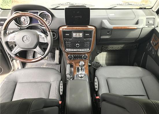 再来看内饰,G500的内饰有黑内棕内和红内,2017款奔驰G500可以选配桃木内饰和桃木方向盘,档次更高,驾驶起来的视野很好,但是座椅是偏硬的。这也是奔驰G500的特点,奔驰G级 (配置|询价)全系车型都是一个样,舒适度不行,这车也不是以舒适度为去趋势的车,他是最地道的土豪级硬汉越野。