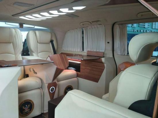 眼前的这辆奔驰维特斯出场就十分惊艳,犀利的前脸造型可丝毫不逊于主打运动性能的车型。中网处采用三幅式镀铬条,拉伸了横向的视觉效果。独特的“虎眼”造型画龙点睛,这就是维特斯外表看起来较为凶狠的主要原因。