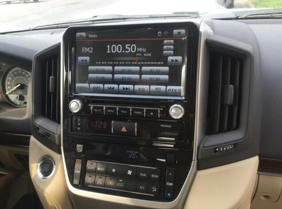 17款丰田酷路泽4000中东版操控台没有过于繁杂的操控按钮,多功能方向盘方便了驾驶员的操控,轻松驾驶。设计师并没有忘记它越野车的身份,所以你能找到很多硬朗的线条,其实用性和舒适性更可媲美豪华轿车。中控台换成了具有磨沙手感的金属板件,增强了内饰的质感。上方为多功能显示屏,中间为音响控制系统,左右两侧为空调出风口和空调温度控制按键。