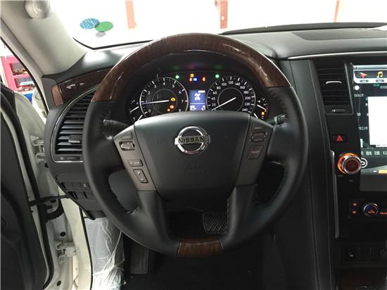 日产途乐y62全新途乐采用了豪华轿车惯用的四幅风向盘设计,粗细比较合手再加上真皮加实木的用料,手握感觉极佳。另外方向盘功能强大,集成了音响、空调控制及蓝牙车载免提系统,使驾驶者在行车中更为安全,做到手不离方向盘。同时方向盘加热功能,令驾驶者双手在寒冷的冬季也能得到最佳的呵护。