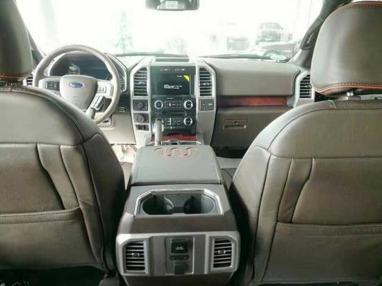 [天津最新行情]福特F150美式皮卡车走的风格路线一直都是彰显硬汉气息方方正正的粗线条风格。这当然也包括了内饰与内部空间的格局,处处都凸显着方正感。从它的车身上看不到精致浮华的装饰,取而代之的是庞大的车身与粗犷的线条。