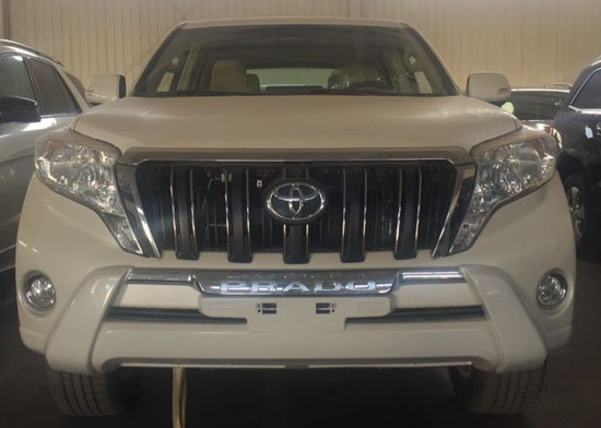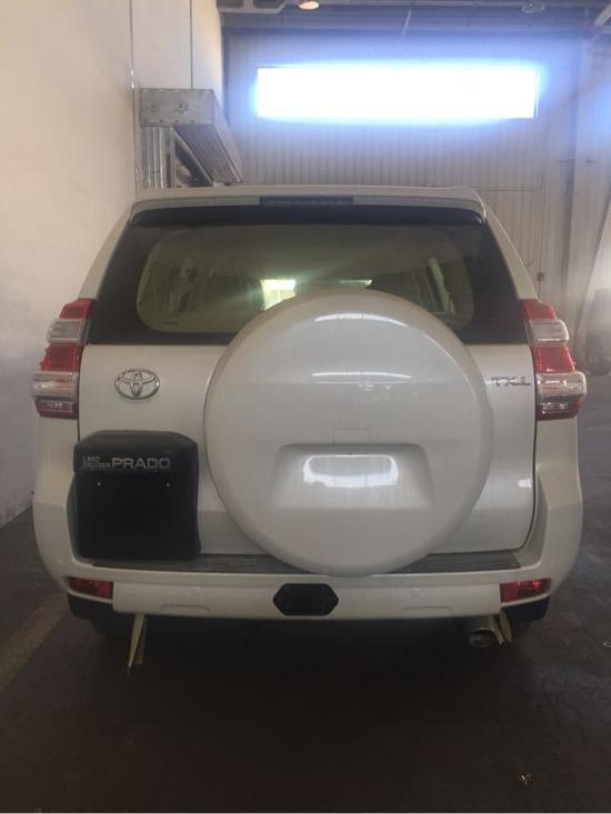 2017款中东版丰田霸道(普拉多 (配置|询价))2700 TXL巴林版配置参考:2气囊天窗后挂备胎18铝轮卤素灯雾灯座椅腰部支橕冰箱巡航定速多功能方向盘7座前小杠后电眼拖钩自动空调大屏防擦条黑踏防侧滑胎压监测。