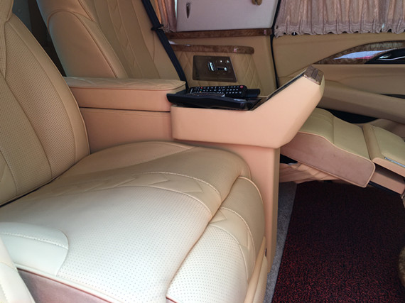 车内的桃木材质的桌子很有质感,坐上去却显得有点冰凉,这点需要改进。老板座的后排,座椅可以通风,加热,按摩,10向调节,非常便利,而舒适性可以说丝毫不比迈巴赫奔驰S600差,车顶的豪华氛围灯,一旦进入车厢就可以看出,很有总统套房的味道。15102262878 李经理(同微信)