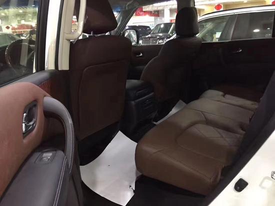 座椅方面:日产途乐为三排座车型,内饰整体风格豪华,真皮座椅、DVD娱乐、上下坡以及胎压监测等装备也都悉数出现。新款日产途乐内饰材质也更加的考究,使用了皮革,铝以及木纹样条作为点缀。 全国24小时销售热线;18722580738张雪 微信同步 可分期