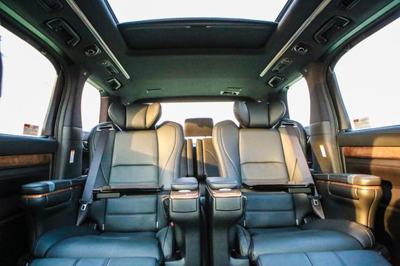 17款丰田埃尔法拥有三面向头枕、独立扶手、扶手置杯架、多功能折叠桌,以及椅背最大78度仰角;前后共拥有450mm滑移长度与高度脚踏垫设。