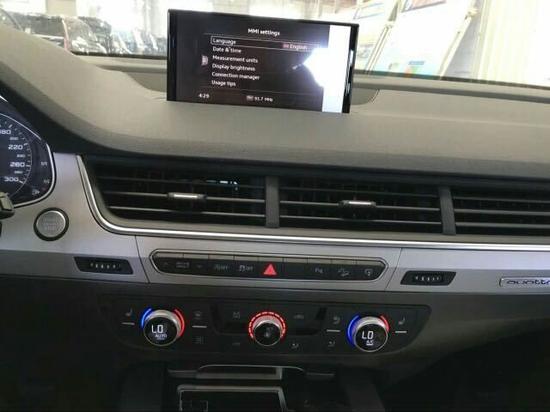 内饰方面:奥迪Q7的内饰造型是典型奥迪风格,材质高档、做工精细,真皮座椅和方向盘、深棕色木纹装饰的点缀都体现出了低调的豪华感。还有仪表盘的水滴造型很别致,中控台的功能键排列有序,在排挡杆的周边,布置了MMI多媒体交互系统和一键式启动按钮,体现出奥迪崇尚科技的一面。足够大的车身尺寸,让驾乘和载物都毫无压力。