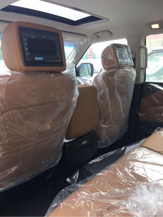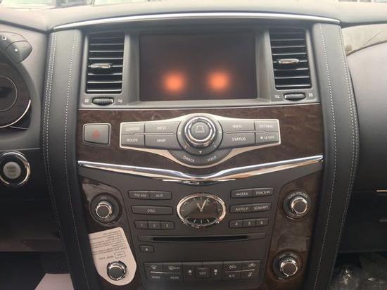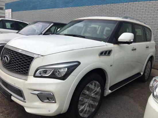 17款 英菲尼迪 QX80 (配置|询价) 5.6排量v8、398马力、7速、全时四驱、拖车模式、雪地模式、多功能方向盘、一键启动、无钥匙进入、nappa真皮内饰、nappa真皮座椅、主驾座椅记忆、主副8项电动座椅、腰部支撑、触摸大屏、自动空调、钟表、座椅加热、天窗、自动防炫目后视镜、桃木内饰、电动尾门、冰箱、后排自动空调、后娱、第三排座椅电动收放、隐藏脱钩、前后电眼8个、led大灯、led日行灯、自动大灯、22轮、环影、胎压、8气囊、定速巡航、行李架、方向盘电动调节、大灯随动转向、BOSS音响13个扬声器