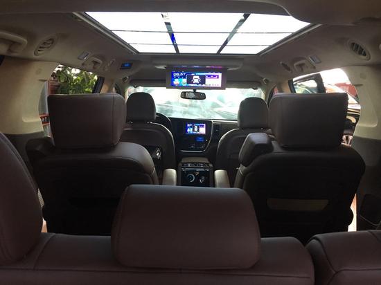 17款丰田塞纳四驱LE精品改装改装清单:全车真皮座椅 钢琴烤漆实木方向盘 真皮中控台 翻毛鹿皮顶 实木地板 暗夜星空顶及氛围灯 迎宾踏板及全车氛围灯 折叠式行政小桌板 DVD后排娱乐系统 内置12L温控冰箱中央扶手箱