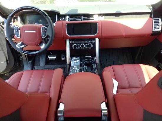 17款路虎揽胜5.0创世加长版,黑/干椒红 配置:4座、全景可开启、氙灯LED、雾灯、前后冰箱、二代地形、环影、无钥匙进入、电吸门、脚感电尾、前泊车雷达、后倒影、桃木方向盘加热、10.2后娱、前后座椅通风加热、前后座椅按摩、鹿皮顶、22刀锋轮、四区空调、825音响、自动调光镜、前后排头枕、夹层IRR私密玻璃、桃木方向盘