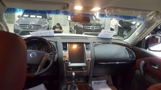 17款尼桑途乐新车前脸冲击感强,中网面积占据了整个前脸,并加上了镀铬装饰,营造出了日产家族式前脸,大大提升了途乐的安全性能。尼桑途乐绝对可以称得上是一个大家伙,尤其是将近5.2米的车身长度,会让您感觉驾驭它具有强大的征服欲。