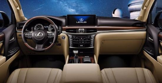 2017款雷克萨斯LX570中控台及仪表台上方的材质为软性真皮包裹,材质优越,按键及按钮手感好。仪表盘和音响系统控制面板遵循LEXUS雷克萨斯未来设计风格,呈现简洁与易操作的特点。四幅多功能方向盘样式显得很稳重,排档杆面板及行驶模式控制面板都呈现厚实的金属感。17款雷克萨斯LX570中控台采用了全新的设计,功能控制区域也进行了简化,最先进的科技和顶级配置,达到了同级别产品中的最高水平,为运动型多功能的车树立了崭新标杆。