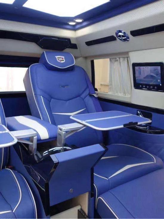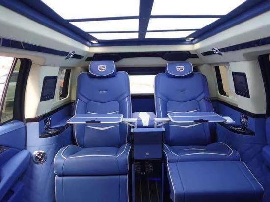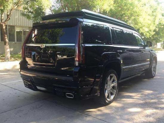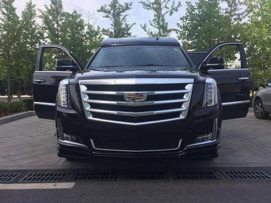 ; ; 配置:凯迪拉克凯雷德总统一号,加长5.98,黑色,内饰蓝色,咖色,6.2L V8 发动机,8速变速箱,4轮驱动,自动调节悬挂系统,电子转向系统,拖车系统,前舱bose环绕立体声音响,主动噪音消除,收音机、CD、MP3,高清卫星收音机,卡迪拉克CUE系统及8寸导航屏幕,蓝牙系统,12英寸可构建显示及驾驶员信息中心,抬头显示,皮质方向盘,加热方向盘,方向盘带控制中心,按键启动,遥控启动,无钥匙方便进入,12方向皮座椅,加热、通风前座椅,第二排座椅加热、电动可翻倒,四门电动窗、前排可一键上下,前后独立控制舒适空调系统,电动可折叠带加热及转向灯的反光镜,雨量感应雨刷,自动远光前灯,前后停车辅助,电动掀起和划动天窗,22寸铝合金轮毂,电动可调整开启角度尾门,双级开启气囊,头胸部气囊,自动稳定带循迹系统,胎压监控,环影系统,防盗系统,盲点警示,后车流警示,驾驶员警示包。后舱6向高级德国Napa真皮航空座椅带加热及气动按摩,舒适腿托,4区域高级气氛灯,可独立控制,梦幻满天星,V型海燕日光模拟灯光效果,梦幻蓝夜间气氛灯,7寸智能中央控制触摸屏,控制后舱所有电子及电动设备,高级隐藏式秘书座,33升大容量压缩机