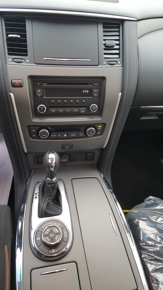 内饰方面:17款日产尼桑途乐Y62采用了豪华轿车惯用的四幅风向盘设计,粗细比较合手再加上真皮加实木的用料,手握感觉极佳。另外方向盘功能强大,集成了音响、空调控制及蓝牙车载免提系统,使驾驶者在行车中更为安全,做到手不离方向盘