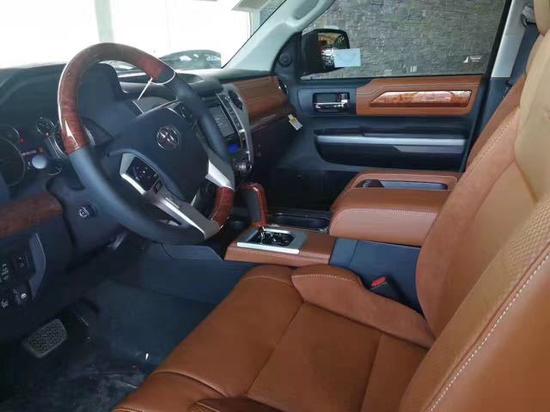 内饰方面:2017款丰田坦途1794的内饰做工十分精致,真皮座椅、桃木的方向盘、动感仪表盘,在简约的同时,透露着稳重与典雅的气息。仪表盘几乎颠覆了之前的全部设计,造型极为新颖。换挡杆造型没有变化,中央扶手箱的凹槽可以存放手机等杂物。咨询电话:15900243121 陶经理(同微信)
