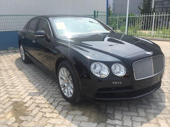 17款宾利飞驰V8S,黑/棕,配置:5座,4+1座椅,20寸轮毂,舒适包(前后座椅加热、通风、按摩,前排可调腿部支撑,后排调节副驾),后排小桌板,后遮阳帘,无钥匙启动,无钥匙进入,电吸门,前排座椅安全气囊,可变悬架,空气悬架,电动天窗,真皮座椅,电动调节座椅带记忆,4向腰部支撑,HDD导航,安全带未系提示,发动机电子防盗,遥控钥匙,连续减震稳定系统,V8S标识。现车,