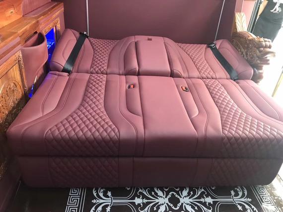 奔驰斯宾特座椅是真皮式软硬适中非常舒适,部分第二排航空头等舱除了多档按摩,还可享通风加热、前后旋转、左右移动等多功能,第三排连排座椅,则可躺倒变身一张双人大床!车厢玻璃通过特殊处理隔热且防紫外线。造型独特实用性出众,对于如此庞大的车型,增强了安全性。