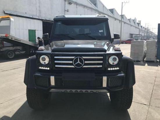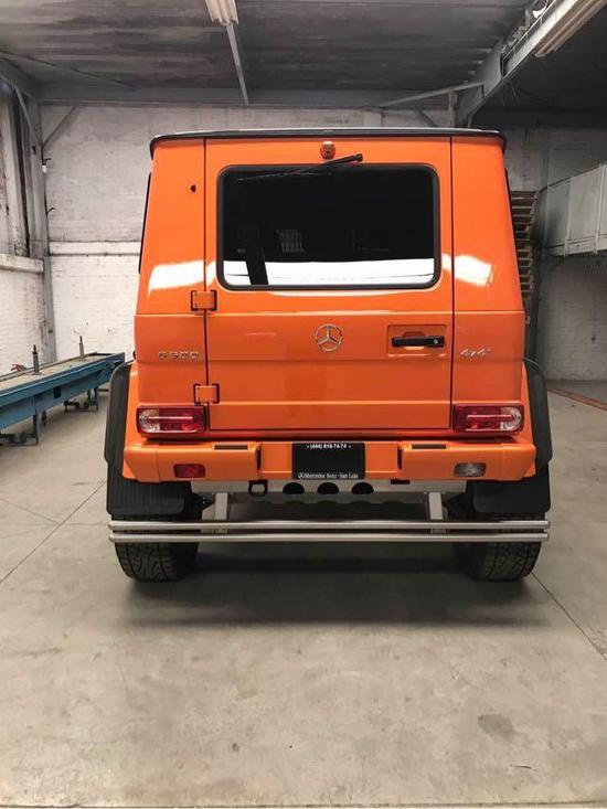 ; ; 细节方面:奔驰G500 4x4²不过外观并不低调,劳伦士为它带来了类似AMG版本的运动包围。前保险杠被分成了三个方形的进气口。轮圈则装上了和AMG款式相近的大五星款式,并采用黑色设计,加上整个黑色的车身,流露出霸气的气质。