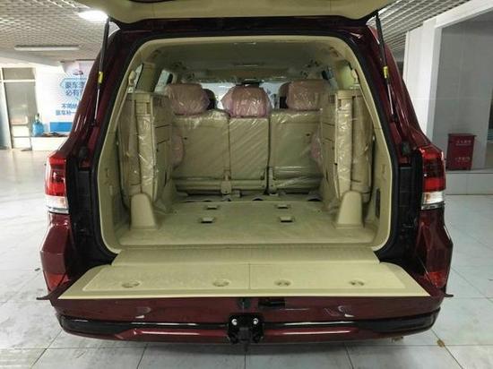17款顶配酷路泽5700的尾门是电动的,只有顶配为电尾门,而且工具盒为实木材质的,细节配置,但是显得更加的档次。电尾门几乎很普遍的配置了,但是酷路泽中,原车都带的只有顶配酷路泽5700。配置了5.7升V8 DOHC发动机。动力输出为5600转时380马力285千瓦,3600转时最高扭矩545牛米。应用了一套新的电子机械系统,它能够控制发动机的转速和输出功率,并提供制动。