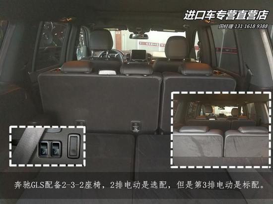 新款奔驰GLS采用7座布局,2-3-2使得空间布局合理,二排与三排空间充裕,行李箱也相比路虎,凌志等车型要宽敞。车身尺寸:5130*1982*1849mm。奔驰GLS450无论美规版还是加版车身尺寸都是一模一样的。进口版相比国行GLS400配置高 价格低。只是奔驰公司生产GLS系相对于不同地区的命名与配置个性化选择的结果。