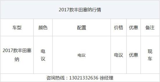 2017款丰田塞纳行情车型颜色配置价格优惠备注2017款丰田塞纳