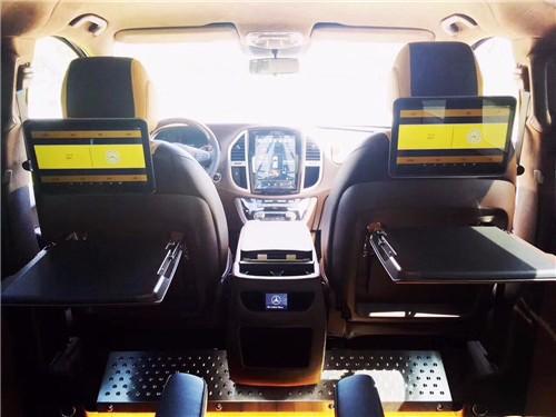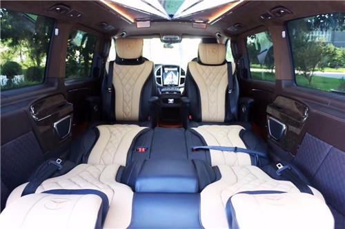 内饰方面:整车座椅采用进口Nappa真皮包裹,电动调节总能让您找到舒适的坐姿,大尺寸触摸屏,配有倒影、后雷达;更有大容量冰箱,安全性,便利性都有保障; 2+2+3座椅排列,也是当前商务车最为流行的设计,二排独立航空座椅,打孔真皮处理更透气,座椅通风、按摩给予您更舒适的乘坐感受,更有360度旋转功能; 无论是照顾孩子、陪家人聊天,亦或是商务洽谈,都能让您随心所欲;此外第三排座椅展开,即可形成一张宽大舒适的沙发床!