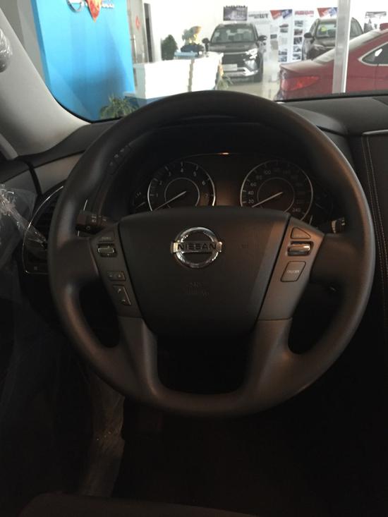 17款日产尼桑途乐Y62 4.0在内部整体采用了深色调的颜色搭配,带来具有高贵感的内饰氛围。同时,该车中控台及方向盘运用了大量的皮质包裹,在质感的营造上也较为出色。此外,这款车在换挡杆周围等区域融入了木纹装饰,这也相应提升了其内饰整体的豪华感。