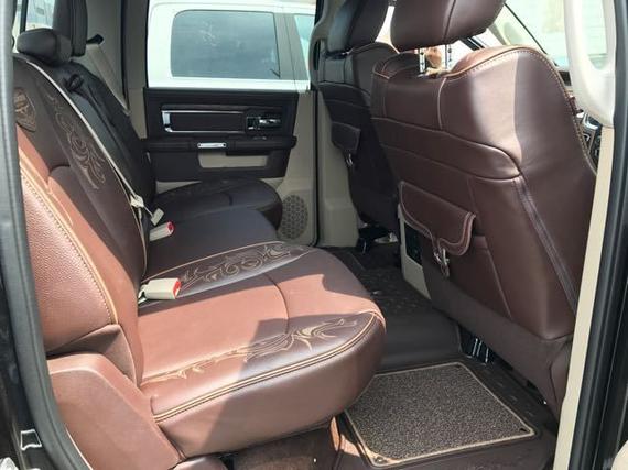 17款道奇公羊长角号RAM版真皮座椅摸起来十分舒适和细腻,很多细节地方也做得相当精致,后排座椅则有通风和加热设备,并且配备了一个小型存储工具箱,可见此款车的设置是十分人性化。款道奇公羊中控台设计看上去比较死板,但丰富的配置会让你不由得为其称赞。RAM采用了四幅式多功能真皮方向盘,功能键可以控制音频系统。