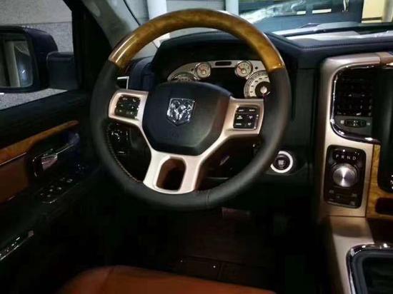 内饰方面:道奇公羊长角号内部设计上还是延续了美式那种比较粗犷的风格,规整的中控台设计看上去比较死板,但丰富的配置会让你不由得为其称赞。进口道奇公羊皮卡那宽大饱满的真皮座椅有种让你一看就想坐的冲动,安全配置以及舒适性方面美国车一向有很高的标准。