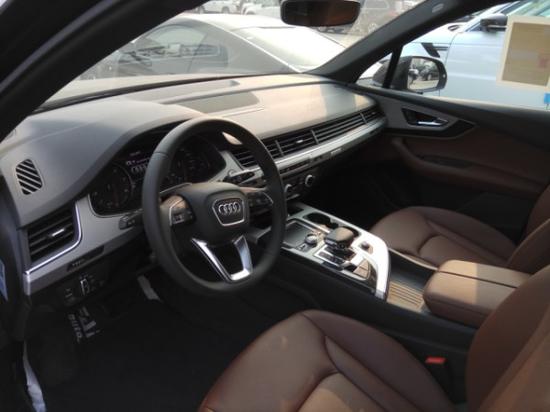 内饰方面:17款进口奥迪Q7相比外观来看,全新奥迪Q7在内饰设计上简直有了天翻地覆的变化,简洁的中控台配备有8.3英寸的可收纳液晶显示屏,并采用铝制和木质饰板相搭配,更加突显新车的豪华感与科技感。除此之外,新车还配备有第二代MMI信息娱乐系统,并可实现触控和实体键双重操作,并且还进一步优化了操作逻辑。