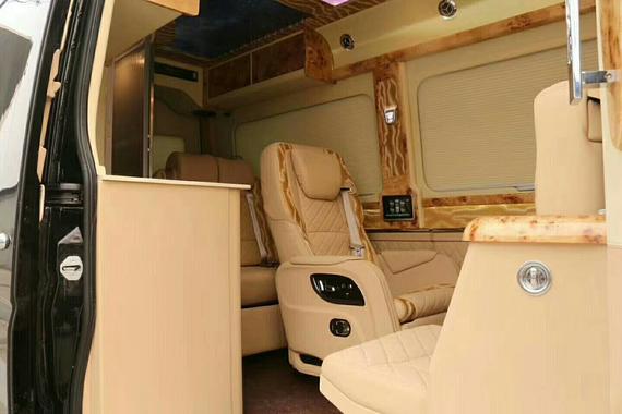 17款奔驰斯宾特房车座椅是真皮式软硬适中非常舒适、车厢玻璃通过特殊处理隔热且防紫外线。斯宾特采用的是3.5L V型6缸汽油发动机、五速手自一体变速器,奔驰在核心技术上世界领先,其发动机优良性能对燃油也更为彻底,省油、低排放从而更环保。