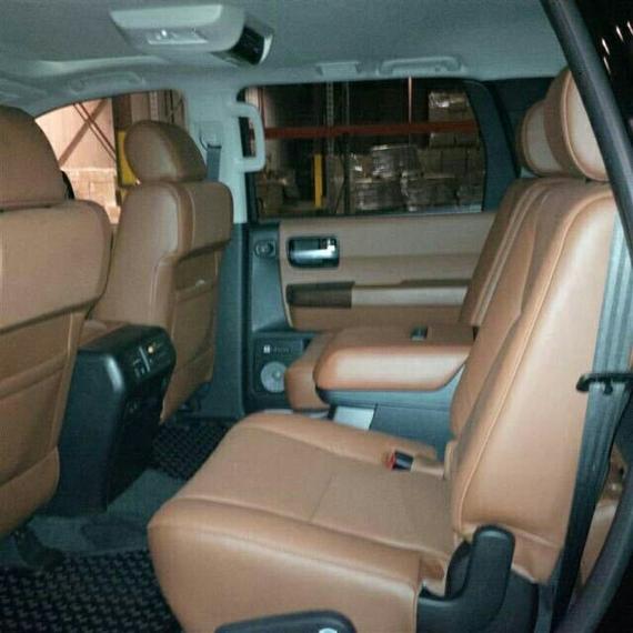 2017款丰田红杉内部空间采用了符合人体工学的设计理念,同时还应用了高品质的内装材质,中控台被银色和黑色分割成了两部分,从而让驾驶者更方便操控。丰田红杉带有桃木内饰装饰,包括细节的方向盘和换档把都是桃木的,而且带有原装的大屏导航和倒车影像,带有底盘升降控制。多功能真皮桃木方向盘可以控制定速巡航音量加减以及蓝牙电话和ACC雷达测距系统。主副驾驶都带电动调节,座椅带有前后加热和前通风功能。