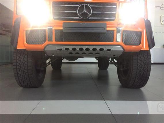 17款新款奔驰G500前保险杠被分成了三个方形的进气口。轮圈则装上了和AMG款式相近的大五星款式,并采用黑色设计,加上整个黑色的车身,流露出霸气的气质,这套轮圈尺寸达到了22英寸,采用轻质合金打造,配上295/35 R 22的轮胎。