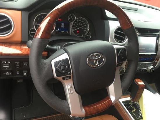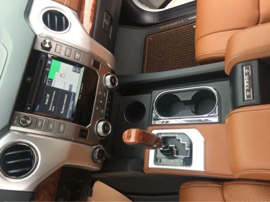 2017款美规版 加版 丰田坦途 1794版配置参考:高级音响系统,天窗,电动记忆组件,电动折叠加热后视镜,带自动防眩目后视镜和转向灯,并到辅助,真皮加热座椅,通风座椅,导航,倒车影像,JBL音响,前后电眼,前保险杠末端镀铬,亮银色保险杠中心,镀铬格栅镶边,木纹/真皮方向盘,木纹/真皮换挡把,1794徽章,20寸镀铬合金钢圈。