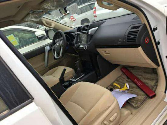 ; ;17款 丰田霸道4000 GXR版 配置:金属漆,七座,九气囊,带硬盘储存大屏,倒影,行李架,前后电眼,卤素大灯,雾灯,18轮,镀铬饰条,天窗,自动空调,差速锁,下坡辅助,防侧滑,冰箱,6速,智能卡,一键式启动,胎压监测,主副驾驶电动座椅。