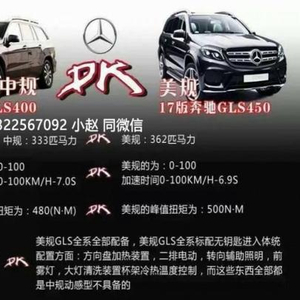 17款美规奔驰GLS450加版奔驰GLS450奔驰作为全球汗青最久长的汽车品牌,不但为咱们解释了德国人对机器的无尽寻求,也留下了诸多经典车型。而在SUV产物线中,奔驰更是有无比丰硕的车型来满意分歧消耗者的诉求,从小巧的都会SUV奔驰GLA到最硬派的奔驰G,奔驰足足筹备了5款SUV为差别需求的消耗者。店内现车手续齐全,色彩多选,国内可上牌照,支撑国内分期购车。而在奔驰SUV家属中体态最大、内饰最豪华的SUV车型当属奔驰GLS莫属了,17款奔驰GLS450美规版,对应中规4S店的GLS400,然而比中规GLS400多30马力,下图作为最佳的诠释: