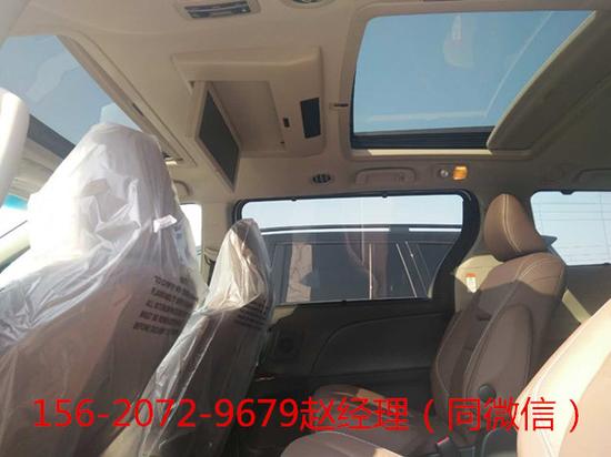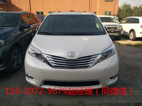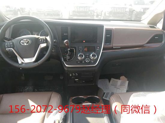 天津鑫海平行进口汽车销售有限公司17款丰田塞纳3.5四驱加版现车火爆促销,现车出售国内,多款色彩可选,配置丰富,关单商检,手续齐全,可售国内,随时看车,当日可提,购车有好礼可享受最高优惠,贵宾咨询热线:156-2072-9679赵经理 (同微信可加)代价是以往平行进口车从未有过的超低报价。丰田塞纳商务车整个车身线条简炼流畅,时尚大气,五米多的超长车身,配之以低重心的车身,修建出猛烈的视觉效果,使用透镜使大灯看起来更加有神和时尚。