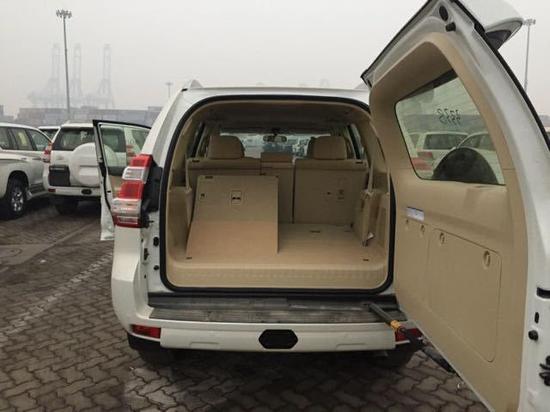 17款中东版丰田霸道4000配置表:2气囊,7座,天窗,巡航,智能卡,一键启动,手动座椅,双区自动空调,冰箱,拖钩,脚踏,行李架,后4电眼,镀铬前保险杠,金属漆,18轮,外挂,遥启。